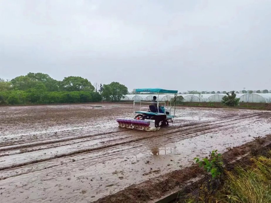 目前“三夏”工作主要是抢收小麦、抢种水稻,另外做好水稻一种就管。水稻播种分为机直播、机插秧及人工直播,老港镇今年预计水稻种植面积约18400亩,其中机直播11236.6亩,机插秧4947.3亩,其他为人工直播。机直播近期已经开始播种到田,目前已完成约1500亩机直播。机插秧秧苗也在苗床冒出了头,在育秧人员的精心养护下茁壮成长,不日就可移栽。