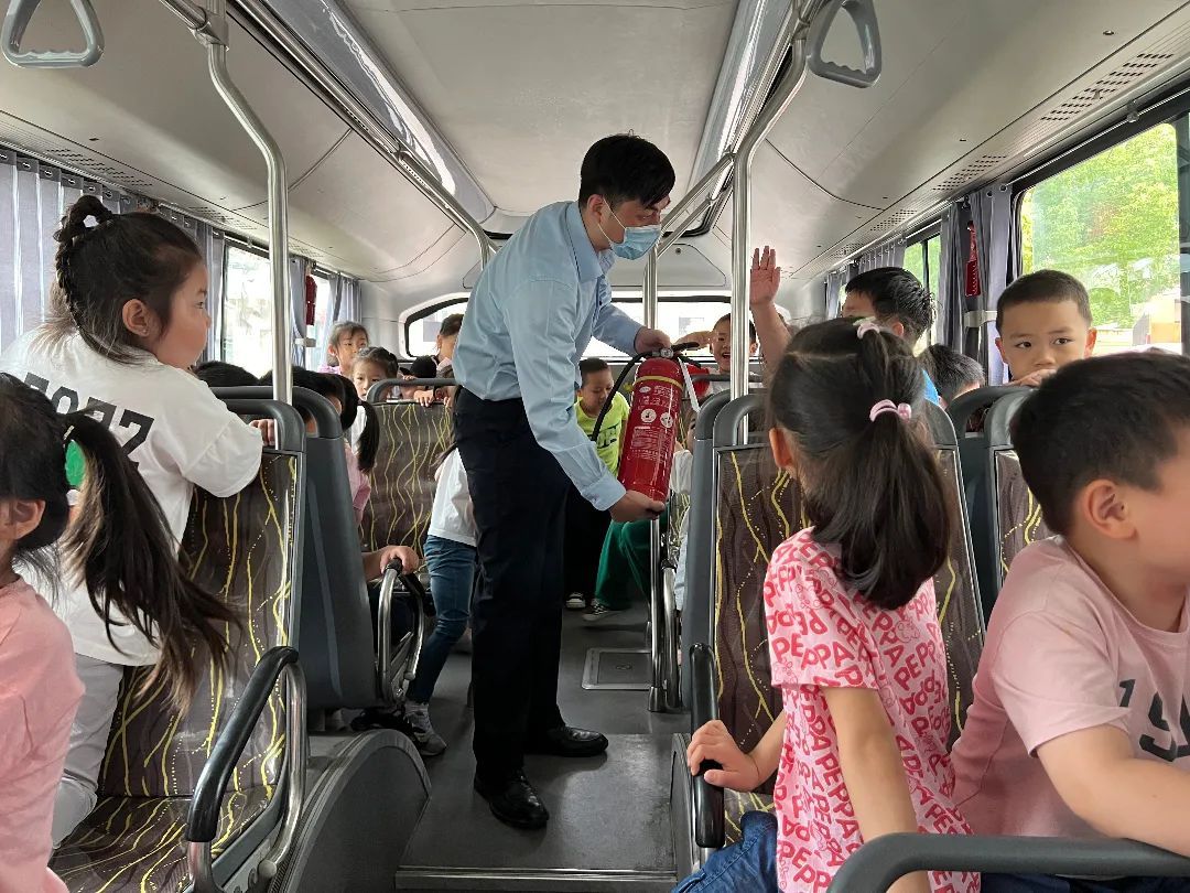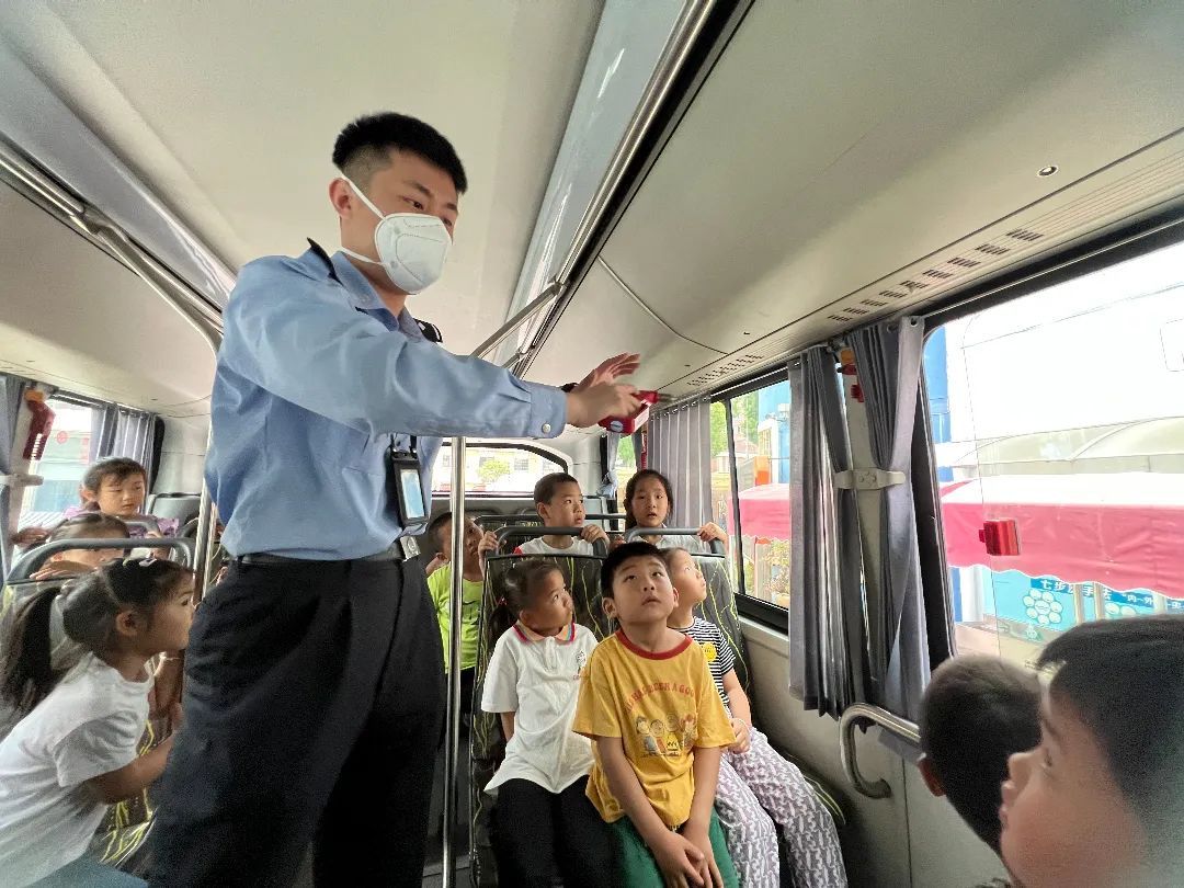 在车厢里,孩子们认真聆听安全文明乘车知识。公交驾驶员还和孩子们趣味互动,让他们从“驾驶视角”感受高科技新能源公交车带来的神奇魅力,沉浸式体验安全教育应知常识。