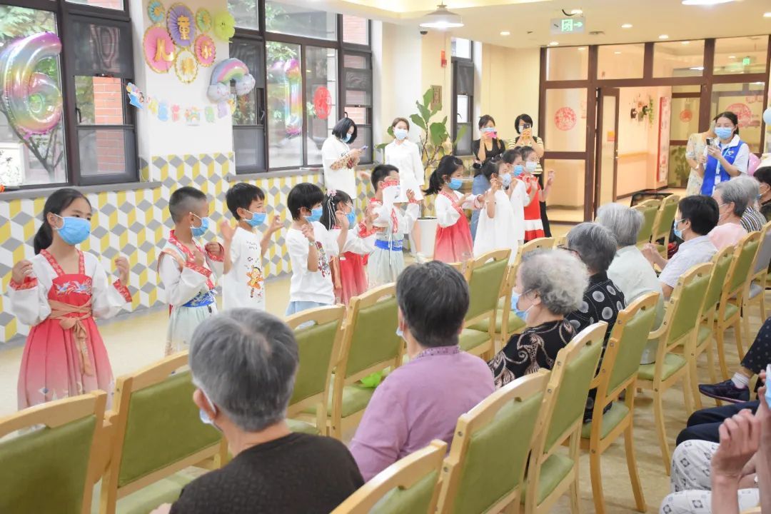 “两只老虎爱跳舞,小兔子乖乖拔萝卜,我和小鸭子学走路……”欢快的儿歌唱响在原本只有戏曲的养老院中,老人们看着充满活力的孩子们,笑得合不拢嘴。“看着这些蹦蹦跳跳的孩子们,我感觉我自己好像回到了童年。”入住在月浦恬逸养老院的杨奶奶笑着说道。