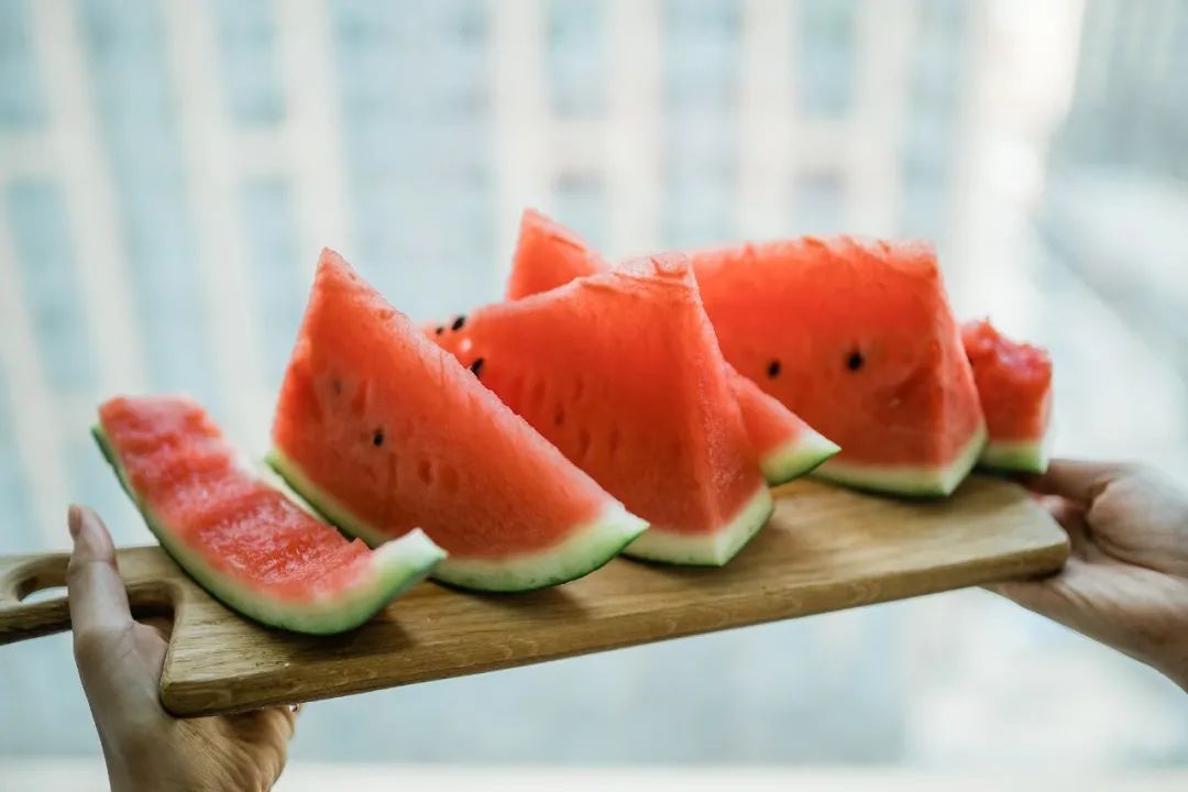 西瓜含有大量水分,有利尿、清热解暑的功效。