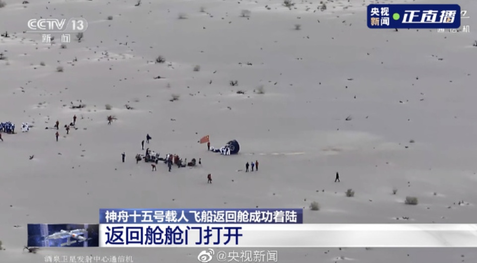 今日早晨6时33分,神舟十五号载人飞船返回舱在东风着陆场成功着陆。经现场医监医保人员确认,费俊龙、邓清明、张陆3名航天员身体状态良好。
