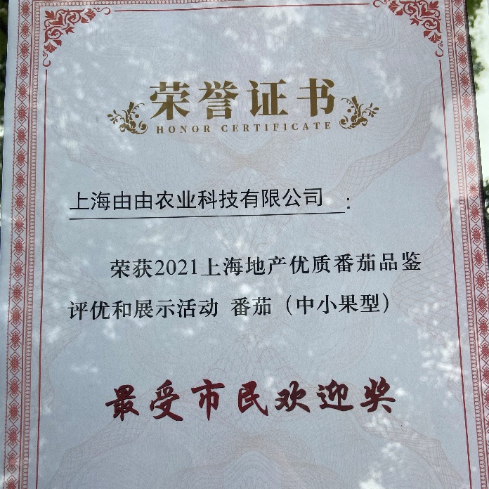 目前,农场生产的“YOUYOU绿色”水稻已达到绿色食品和GAP标准,委托第三方公司对每一批次产品进行100-150多种农残检测,绿色标准抽检合格率达100%。2021年上海地产番茄评比中,“由由品质串番茄”小果荣获“金奖”、中大果荣获“最受市民欢迎奖”,有效提高由由品质果蔬的品牌竞争力和影响力。