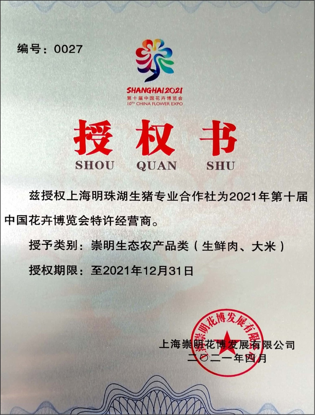 基地生产的“明珠湖”品牌猪肉及“豚田稻米”均获国家商标局、产权局颁发的商标注册证,“明珠湖”注册商标还被列入第六批上海市重点商标保护名录,产品曾荣获“2021上海地产优质猪肉品鉴评优和宣传推介活动铜奖”、“上海第十届中国花博会特许商品”、“崇明好物”等称号。公司现已构建较为完整的线上线下销售网络,其中叮咚、淘宝为代表的线上销售点4家,沃尔玛、农工商等为代表的线下销售点260多家,同时通过媒体、网络直播、展示展销等多种形式,不断提升品牌知名度。