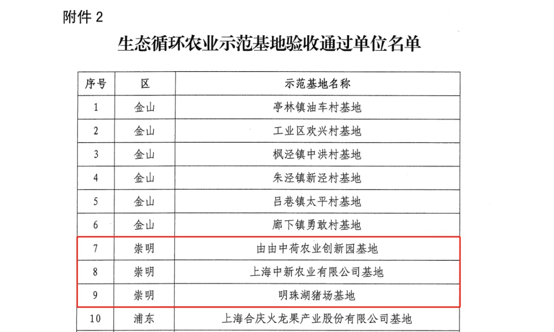 日前,市农业农村委公布第三批生态循环农业示范创建工作验收通过名单,全市4个示范镇和43个示范基地通过考核验收。其中,位于崇明区的由由中荷农业创新园基地、上海中新农业有限公司基地、明珠湖猪场基地入选生态循环农业示范基地。