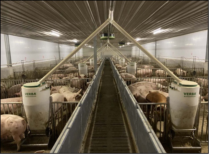 为最大程度实现绿色生态发展,基地定期邀请第三方对环境开展采样检测,评估猪场臭气浓度、噪声、污水等情况,检测数值均达标合格。猪舍优选五谷杂粮、发酵原料、微生态生物等饲料,采用电子饲喂和节水饮水系统,在满足饲养和饮水需求的基础上,最大程度减少资源浪费。通过自行开发“氨基酸平衡模式下的低蛋白饲料配方”,比传统猪饲料蛋白含量减少2%,有效减少粪污排放,从源头上减少气味产生。