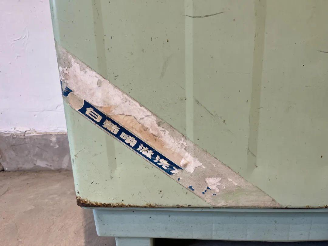 从外观看,一眼就能看出这台洗衣机是“老货”。八十年代的家用电器多为这种绿色,如冰箱等。