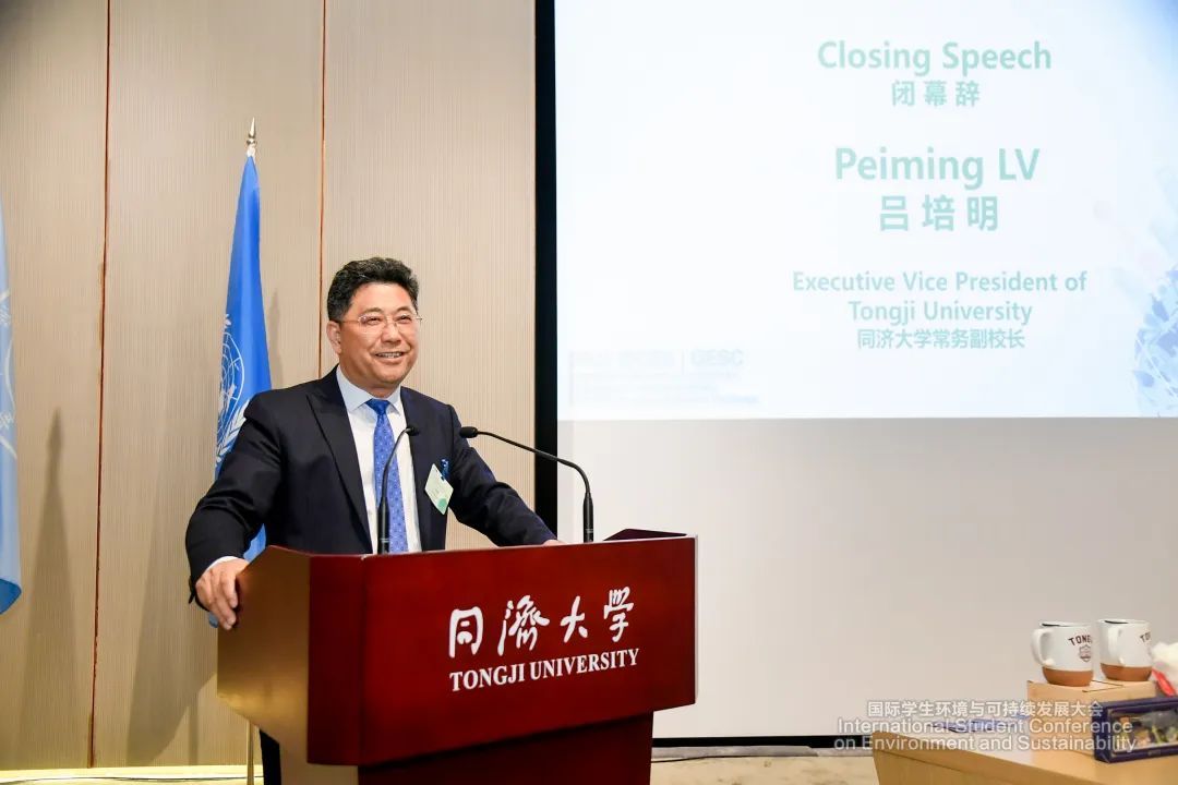 闭幕式上,吕培明表示,同济大学在可持续发展的教育和科研领域成绩斐然,期待越来越多的青年人与同济师生携手并进,奋力开创可持续发展新局面,正如同济校徽所传递的精神一样,同舟共济、互利共赢,为实现可持续发展目标而不懈努力。