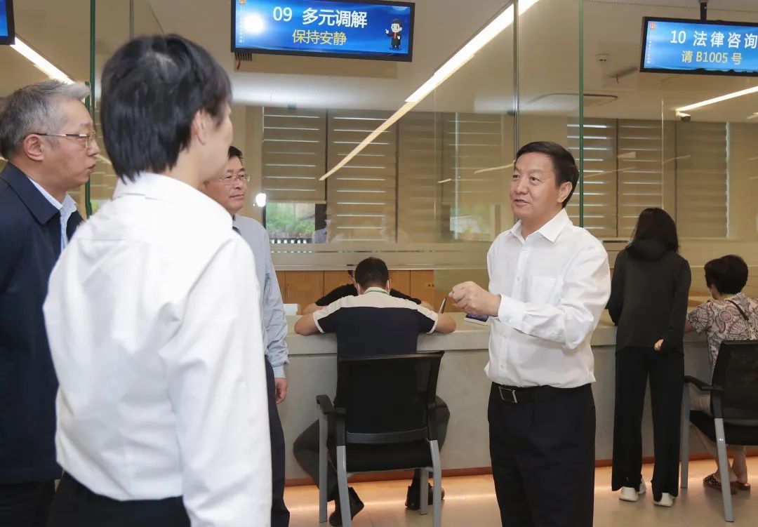 面对基层一线工作反映出的问题,贾宇现场与静安区委书记于勇、静安区委常委、政法委书记王翔就社会治理工作进行交流,他指出:“这项工作一定要往前延伸,不能等矛盾走进法院了再调解,要依靠党委、政府的力量,让纠纷在前端化解掉。”