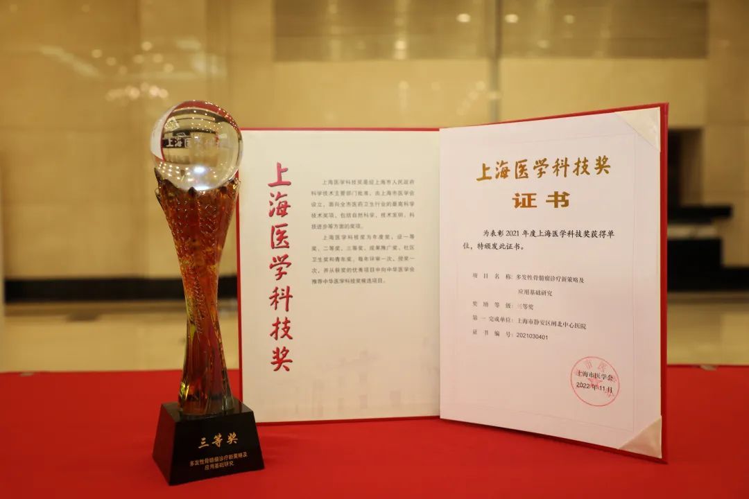2020年第六届“上海市抗癌科技奖”评选中,团队关于《节律性化疗诊治复发难治多发性骨髓瘤的临床与基础研究》被评为三等奖。在2021年度上海医学科技奖评选活动中,团队关于《多发性骨髓瘤诊疗新策略及应用基础研究》项目荣获三等奖。