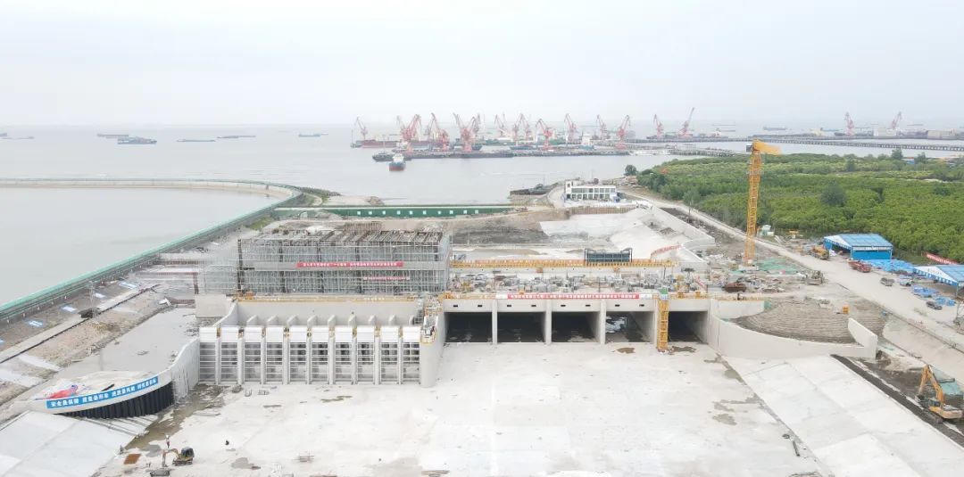 2023年5月29日,通过通水阶段验收,初步具备通水条件,今年9月泵站有望实现结构封顶,水闸结构封顶也将在今年年底完成。