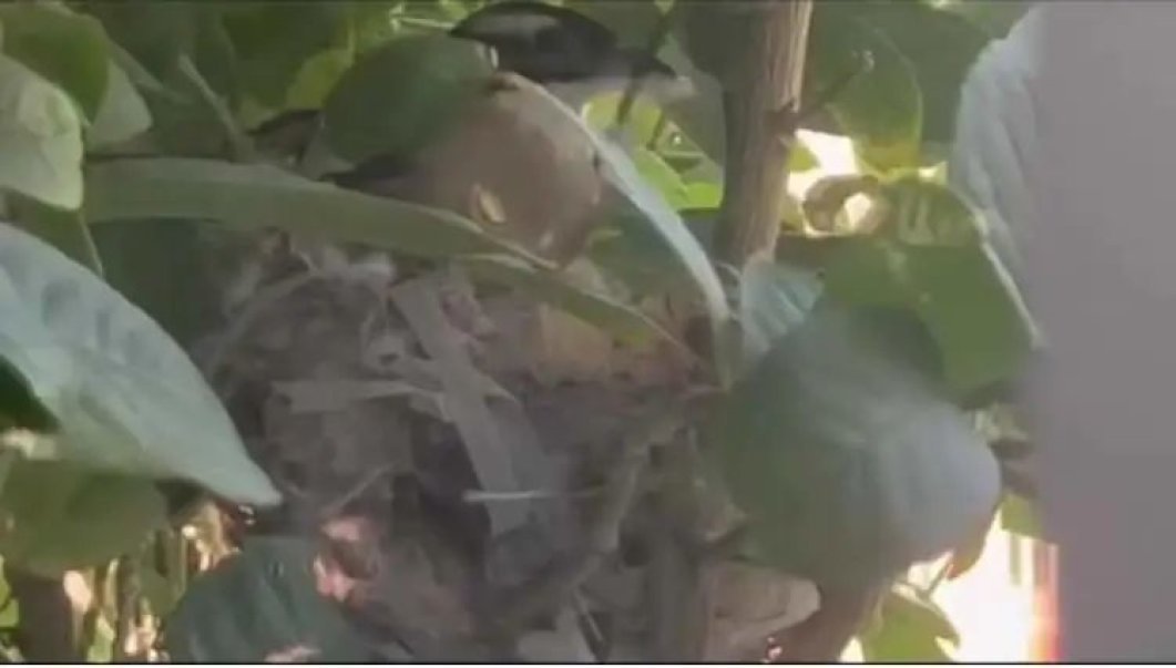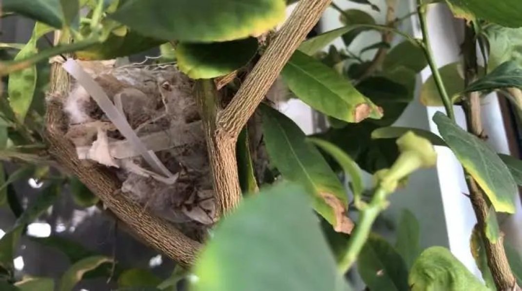 “你看,鸟窝就在这棵柠檬树上,白天有人走动,它不会来做窝,等没人的时候就悄悄衔来小树枝开始‘施工’,最近我们都不敢多来露台。”顺着吕女士指的方向,可以看到,露台上一棵柠檬树的树枝之间,果然有一个饭碗大小的鸟窝,已经初具雏形。