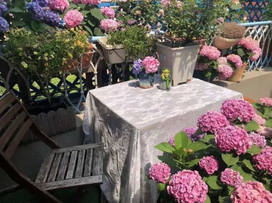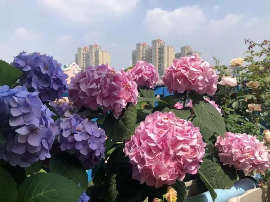 眼下正是绣球盛开的季节,吕女士家的阳台上也有多盆绣球,除了常见的粉色外,还有蓝色,这是吕女士自己调的颜色。“绣球会因为土壤酸碱度不同,开出来不同颜色的花。”吕女士说,除了调蓝剂的使用,腐殖土、椰子壳等各种配比也很重要。