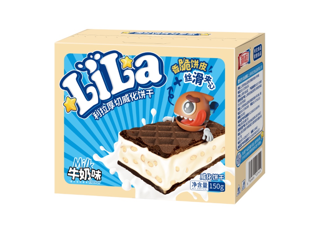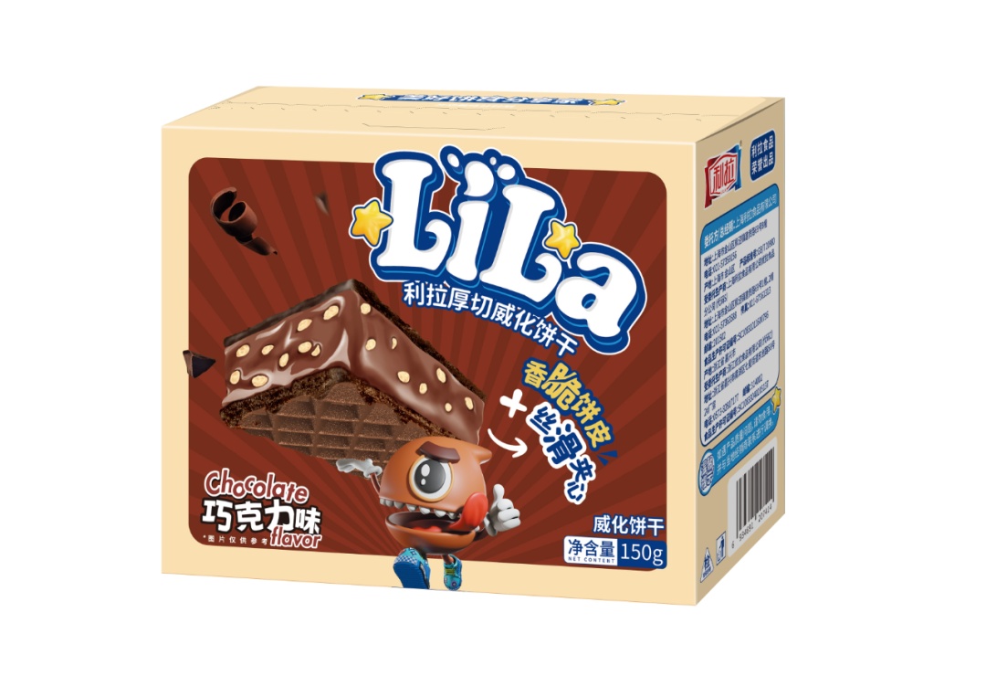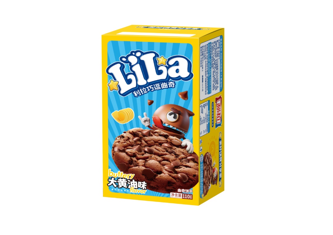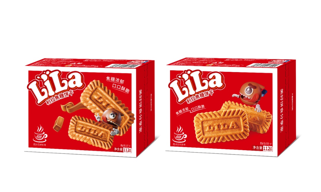 经过重新设计的包装带上了利拉的卡通形象——一个萌趣可爱的巧克力豆小人。在红白撞色的包装下,焦糖饼干在保留了原有口感的同时,改良了产线和模具、重新设置了烤炉温度,美化饼干外观提升了香气。