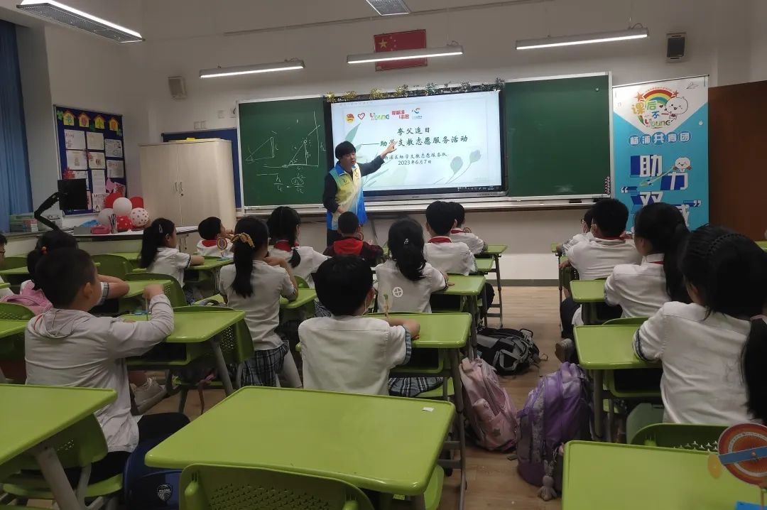 “小朋友们,你们有没有听说过夸父逐日的传说?你们知不知道,在我们的航天工程中,也有‘夸父’的故事……”近日,杨浦区助学支教志愿服务队、“小雷达”文明城区创建青年巡访团成员走进打虎山路第一小学,为同学们带来了一场精彩的《新时代“夸父逐日”》科普课程。