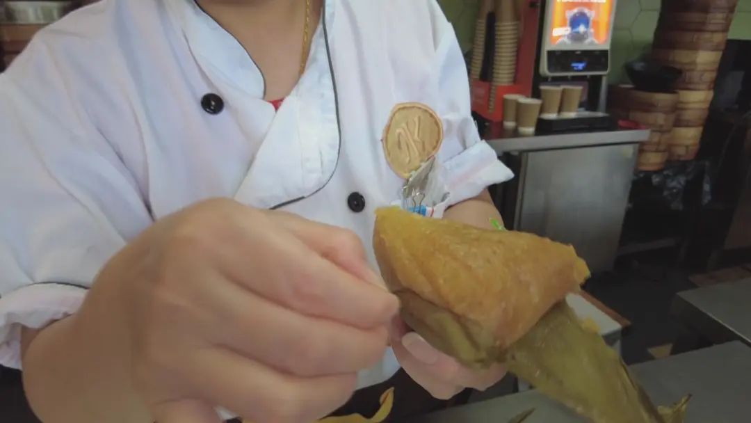 市民王先生说:“我看到这个松月楼有古法碱水粽,名字挺吸引人的,特意买一个尝尝看,这个糯米咬上去糯糯的,还有一种清香味道,味道真的很好。”