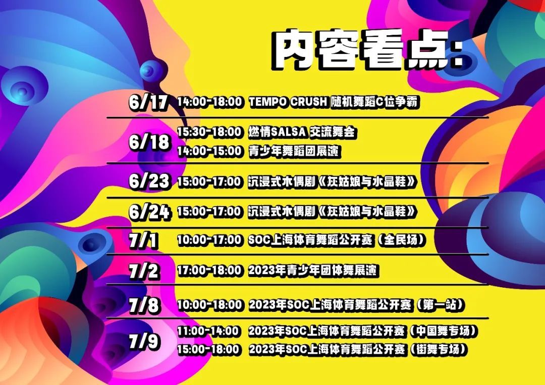 期待2023 SOC上海体育舞蹈公开赛开幕礼,舞蹈达人云集,万勿错过。比赛/表演日程可以往前梅龙镇广场官方微信查看。精彩盛事,万勿错过!