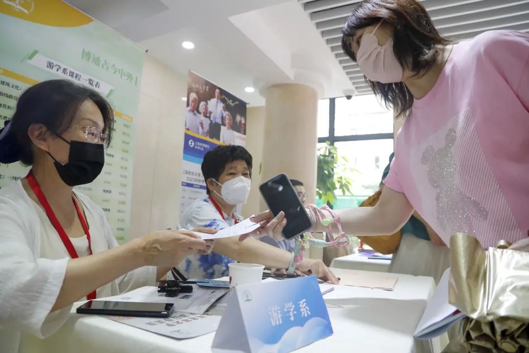 据悉,本次开放日活动通过报名预约已有近千名老年人走进上海老年大学,踊跃报名进入老年教育课堂。