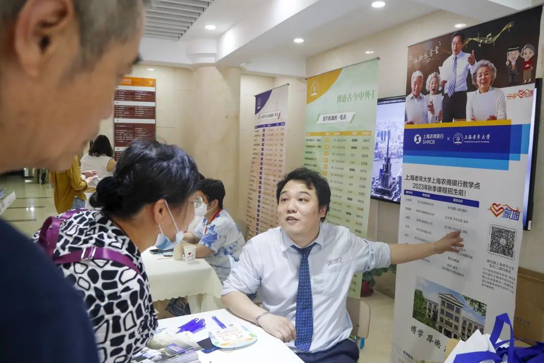活动当天,上海老年大学除了为老年人奉上外语、保健、文艺、计算机、游学、国学经典等一道道老年教育的大餐外,还邀请了华东医院科普专家讲师团开讲,警官普法教育,曙光医院治未病中心主任张晓天义诊。
