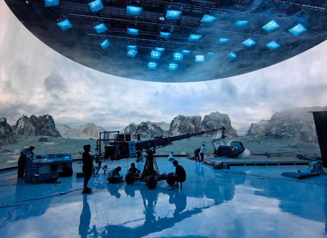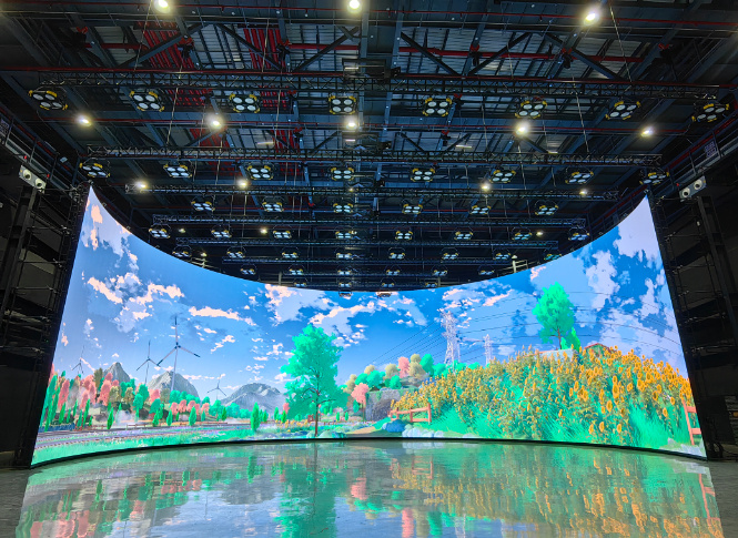 此次峰会极具创新地将场地设在虚拟棚内。这是目前国内最大电影级5G智慧虚拟摄制棚,面积3000平方米,配备全套LED虚拟摄制系统。棚内设有一块弧长44米、高10米、直径23米的“超级屏”,它由1760台点间距为2.84毫米的LED箱体和播控系统组成,整屏分辨率高达15K。“‘超级屏’的启用,将全程可视化摄制工艺流程、沉浸式体验、真实世界与虚拟环境完美融合,为影视制作生产团队带来前所未有的高效性、便利性和创作自由度。”中国电影科学技术研究所党委书记、所长张伟说,当前已有一批影视项目预定拍摄。
