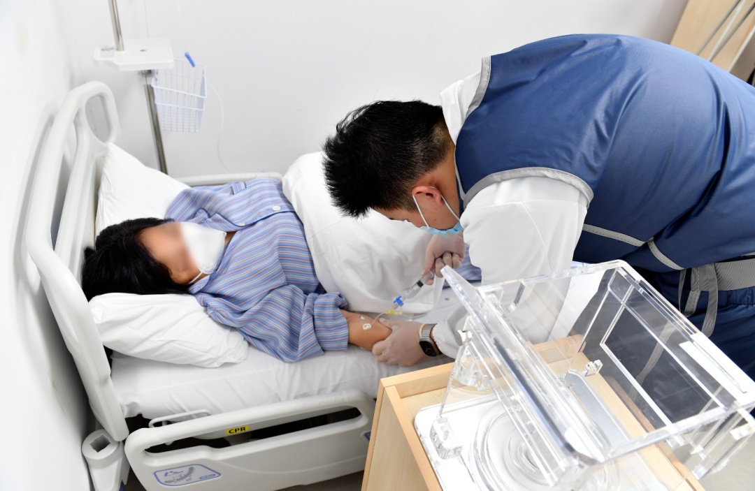 开始治疗前三周,医院首先明确王女士生长抑素受体表达情况,了解肿瘤细胞数量及分布情况,这为精准给药“探路”。治疗中,核医学科护士先给患者打了止吐针,随后输注氨基酸保护肾脏,半小时后,在核医学科病区注射放射性药物镥177氧奥曲肽注射液。该款注射液由北京先通公司研发、具有我国自主知识产权。这也是上海首例PRRT临床试验病例。