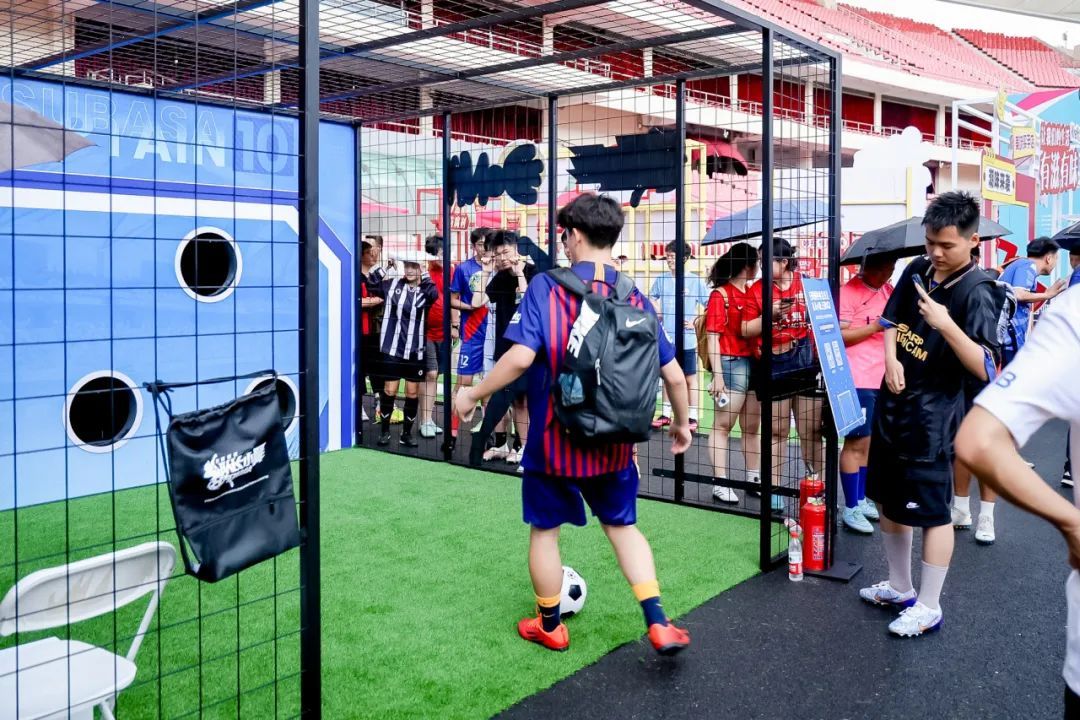 本次嘉年华围绕“潮”字做足文章,着眼体育运动这一备受“Z世代”关注的消费热点,邀请到足球运动员于海、彭欣力等多名体育达人以及多位得物APP年轻用户,在现场展开了生动时尚的“足球嘉年华”。活动通过5V5团战、1V1个人战,以及足球飞镖、足球乒乓球等创新玩法,带动了一波运动热潮。活动中,得物IP闪现品牌区域,代表潮流驰骋绿茵场;维梵商贸带来AC米兰、 罗马、上海海港等众多俱乐部衍生品;更多品牌带来全新产品和好玩的互动游戏,年轻人的体育消费热情在这个暑假加速催热“体育经济”。