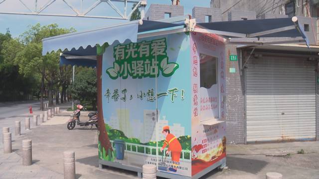 戚娟宝口中的小驿站,原身其实是退出了历史舞台的核酸采样亭。为了让资源得到充分利用,石化街道东村居委会联合共建单位金欣环卫,将核酸采样亭打造成专供环卫工人、志愿者、快递员等户外劳动者和新就业形态劳动者的“有光友爱小驿站”,内设空调、微波炉、冰箱、防暑降温用品、毛巾、书籍等,可同时供3、4个劳动者来站点避暑、避寒。