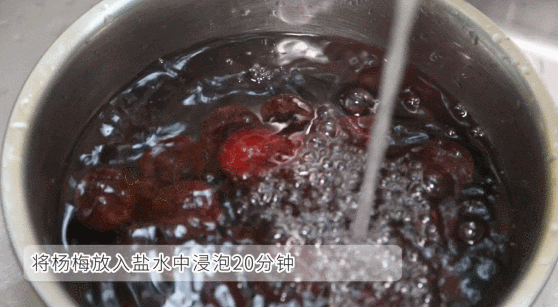 1. 将杨梅放入盐水中浸泡20分钟并洗净。