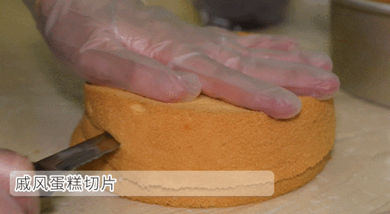 8.放上一层杨梅果肉后,用奶油抹平,再盖上一片蛋糕胚。
