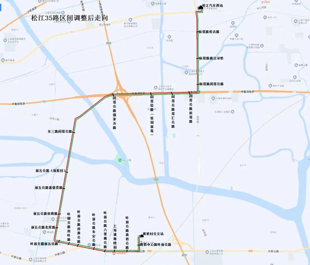 调整后新增叶新支路新五公路、叶新支路田叶路、叶新支路田黄公路、叶新公路朱定公路、叶新公路六里庵公路、上海浦南陵园、叶新公路黄桥公路、黄桥中心路叶新公路和黄桥村公交站9处站点。
