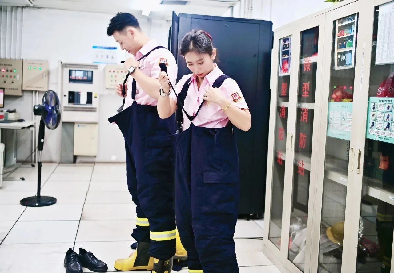 演练伊始,站台站务员发现情况后第一时间汇报给车控室,值班站长立即赶往现场,启动最小作战单元同时拨打119寻求救援。随着现场火势迅猛并伴有浓烟溢出,车站两名工作人员以最快的速度穿上消防战斗服前往现场,使用“一带一枪”进行火灾初期扑救。