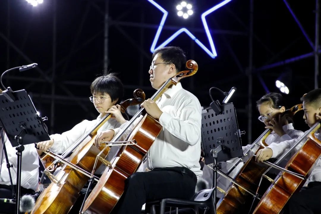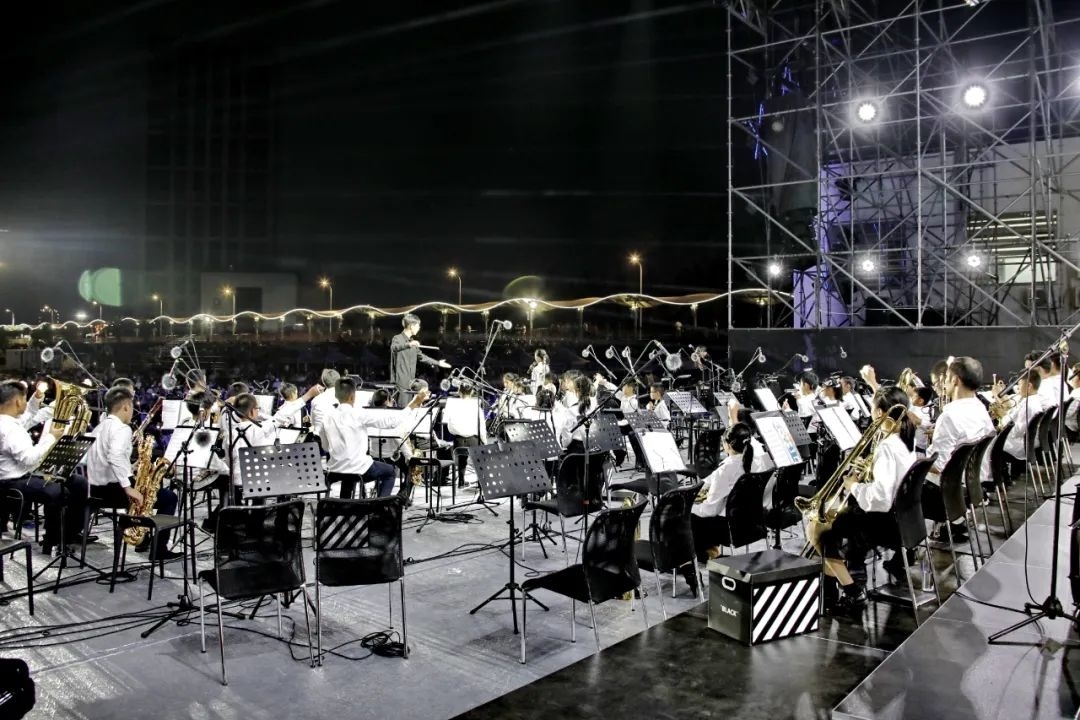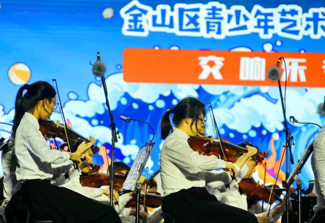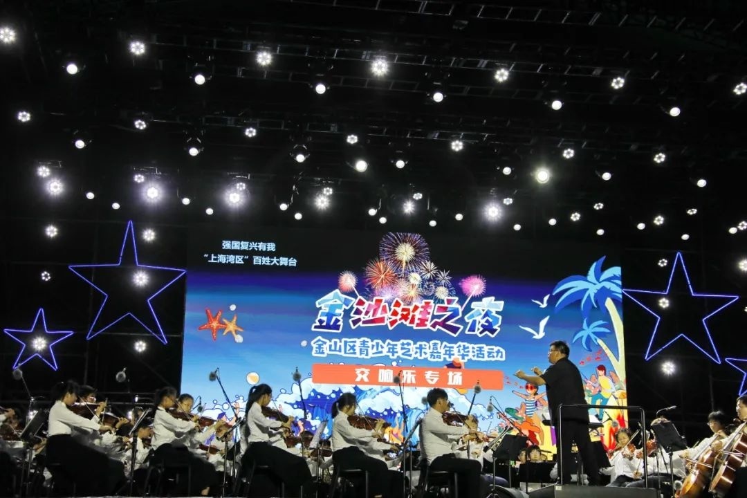 昨晚七点左右,金沙滩之夜金山区青少年艺术嘉年华活动首场演出正式拉开帷幕,金山区学生管乐团、弦乐团以及交响乐团为现场观众带来《精灵湖序曲》《康定情歌》《逐光》《我的祖国》等乐曲,管弦乐演奏出悠扬的旋律,在流光溢彩的灯光点缀下,点燃了金山城市沙滩的夜空,不少现场游客纷纷拿起手机记录下这美好的时刻。