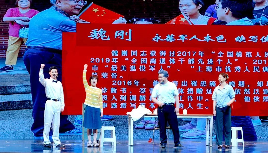 淞南镇社区文化活动中心表演工房历经两个多月的潜心创排、细心打磨,调整了数次剧本后才完成定稿。该小品以淞南五村党员志愿者、退役军人魏刚为原型,以戏剧小品的形式重现了他在为居民调解过程中的一幕幕感人故事。