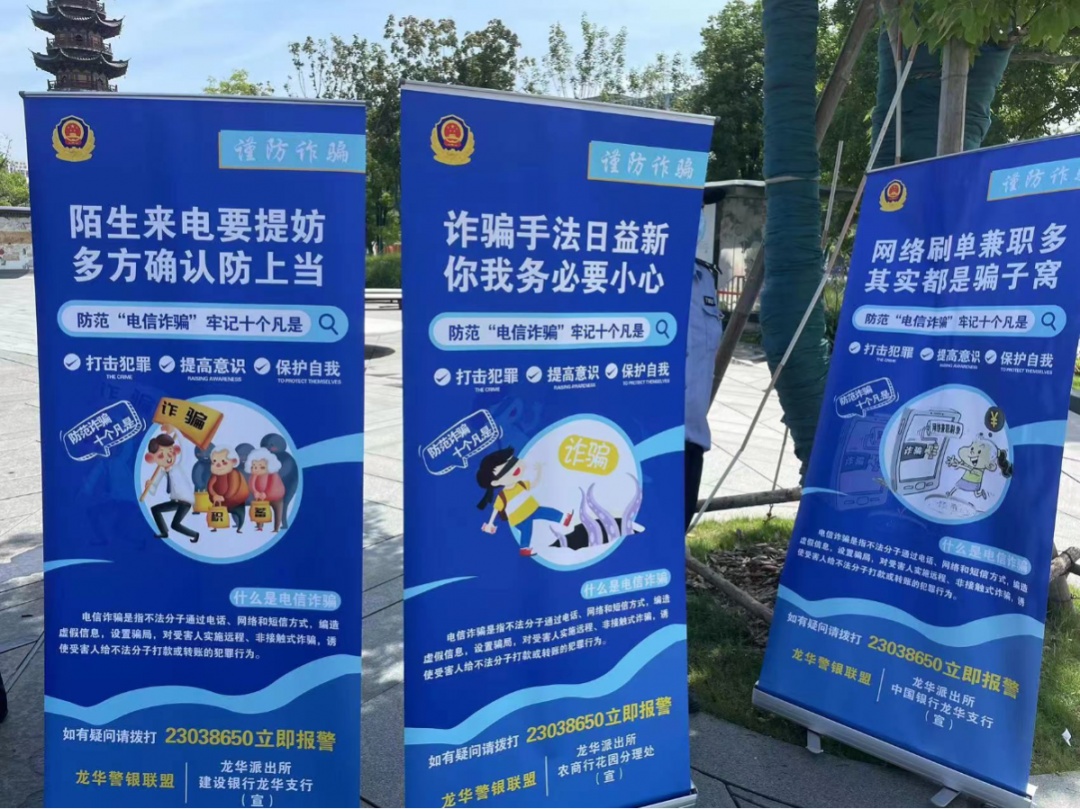 而在龙华广场,龙华派出所和辖区各银行代表联合举办了“警银携手,共创平安”防范电信网络诈骗宣传活动。民警通过发放反电信诈骗宣传单、宣讲常见诈骗手法等方式,帮助居民进一步提高“识骗、防骗、拒骗”能力。
