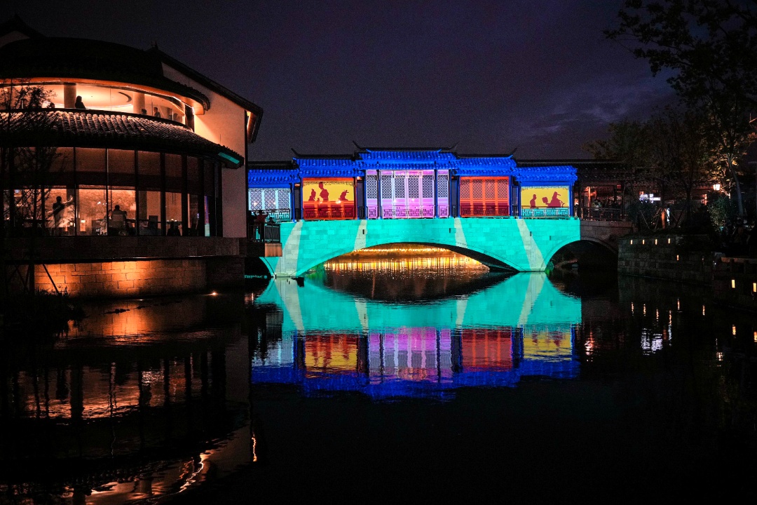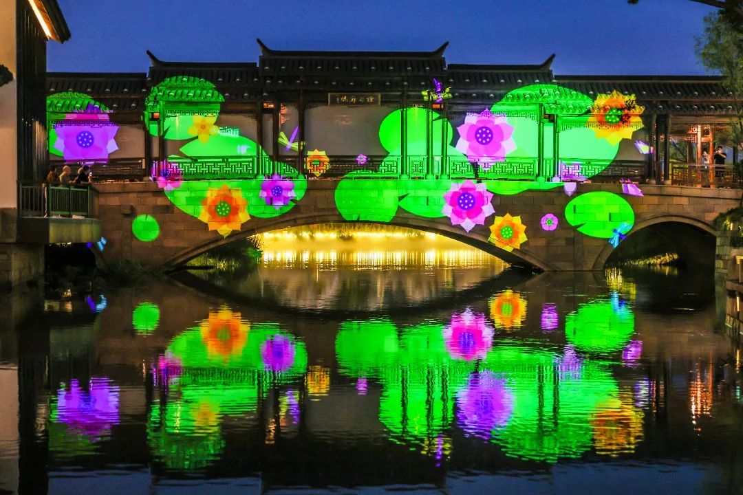 光影间,或有一池荷花,摇曳生姿,或有水波荡漾,江南诗情,吸引了不少市民游客驻足观赏,不少市民表示,现代数字艺术作品与古镇的结合,既有古韵,也有新味,趣味十足。“让我眼前一亮,尤其是这次的新作品,荷花和蜻蜓跃然桥上,与水面浑然一体,特别巧妙。”市民徐女士说。