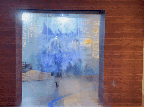 展览利用投影造景等技术将“实物”与“原境”展示相结合,裸眼3D展项、雾幕投影、实验室场景、全景式出水媒体show、光影打捞互动体验……让观众沉浸式感受考古“黑科技”。