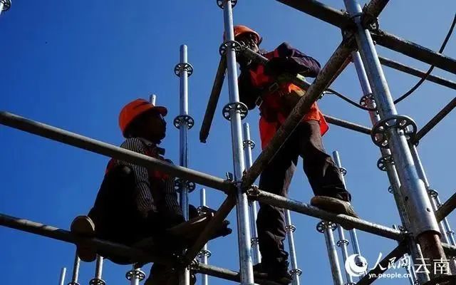 以勒镇沪滇协作物流产业园内,工人们在加紧施工