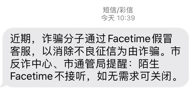 而针对近期多发的利用FaceTime接入的疑似诈骗电话,上海市反诈中心也提醒:陌生人的FaceTime不要接听,如不需要可以通过设置,关闭FaceTime功能。