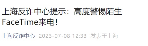 这究竟是怎么回事?上海反诈中心发布重要提示:高度警惕FaceTime来电!