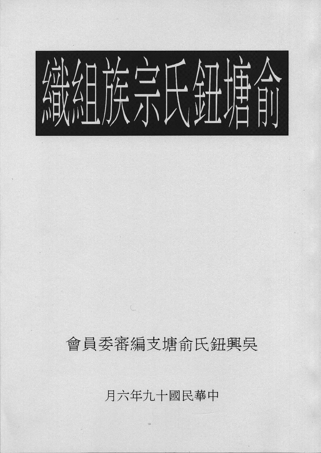 1930年编印的《俞塘钮氏宗族组织》一书