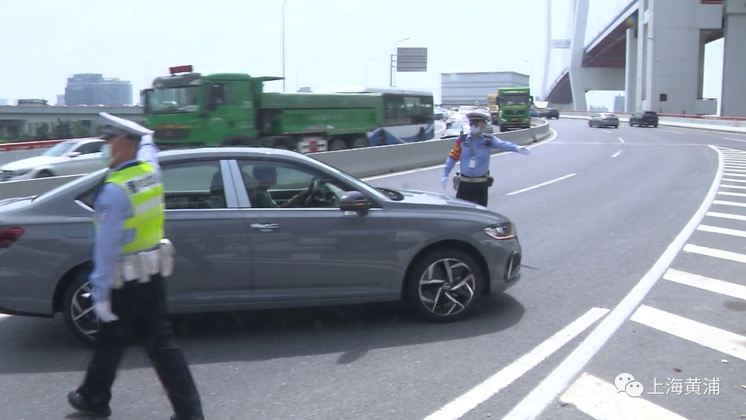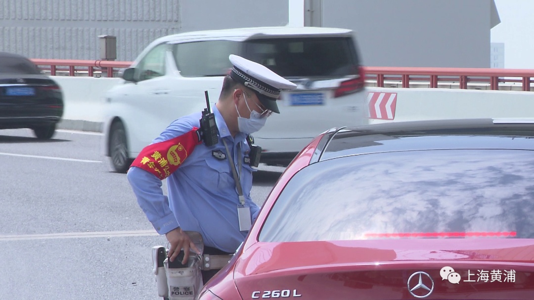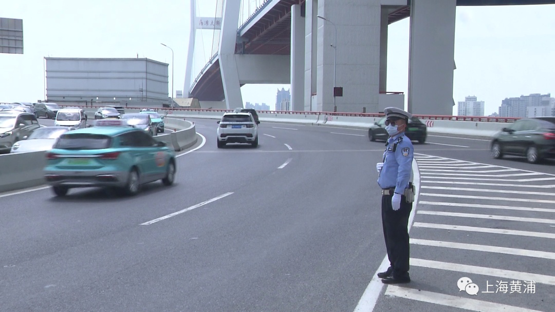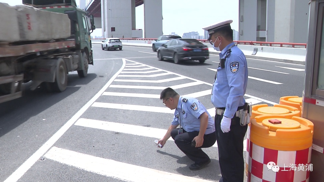 管辖南浦大桥相关区域的是黄浦交警支队二大队的民警,工作分为早中班,早班是早上7点到下午3点,中班是下午3点到晚上10点半。他们的主要执勤点设立在南浦大桥浦西往浦东引桥两圈半的地方。因为这个点视野宽阔,不仅可以看到引桥,而且可以观察到主桥和内环线,同时,这里的导流线也比较宽,有利于处置多种警情。