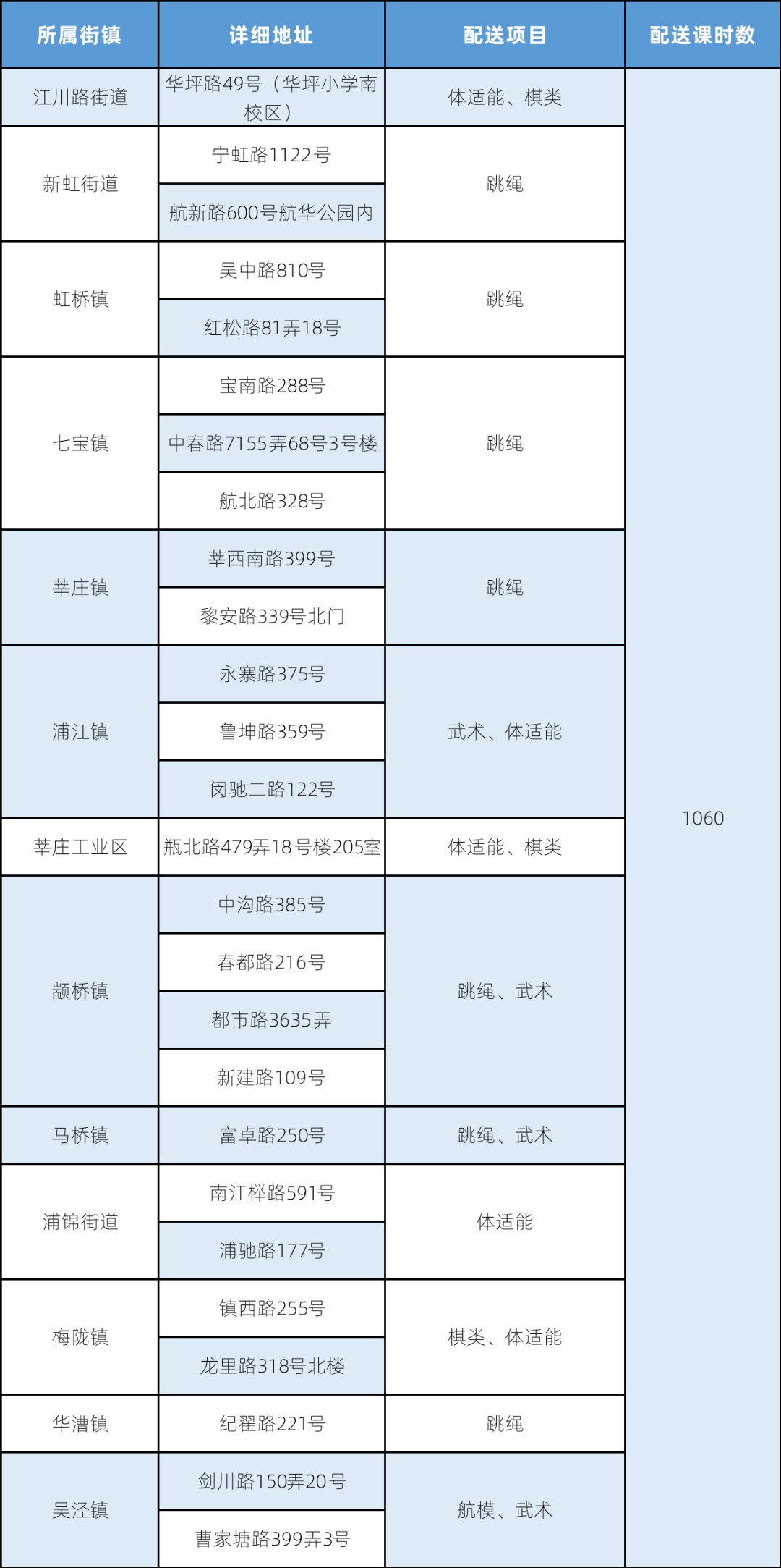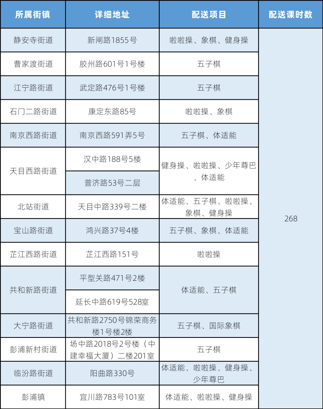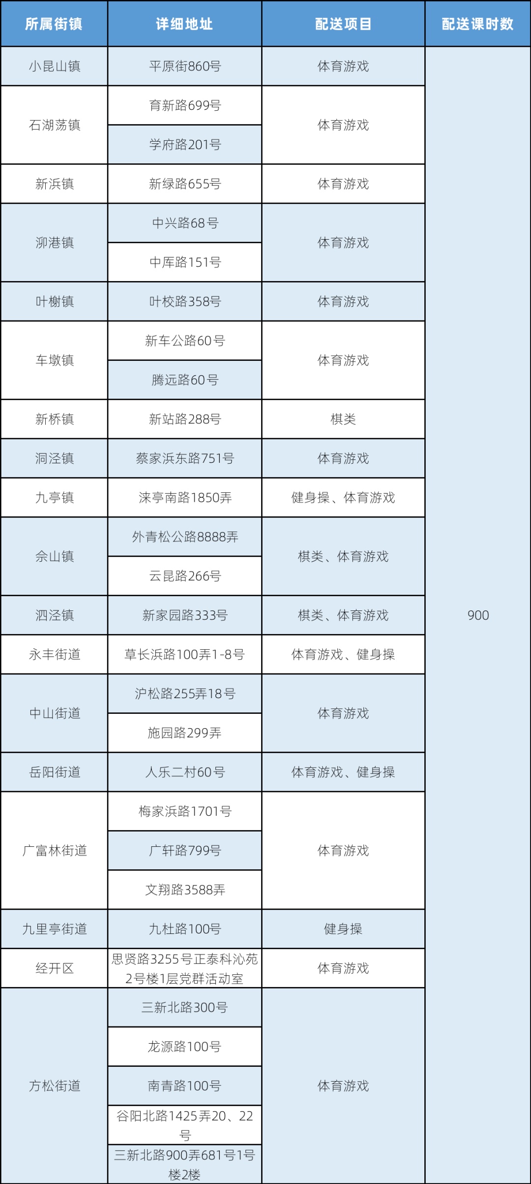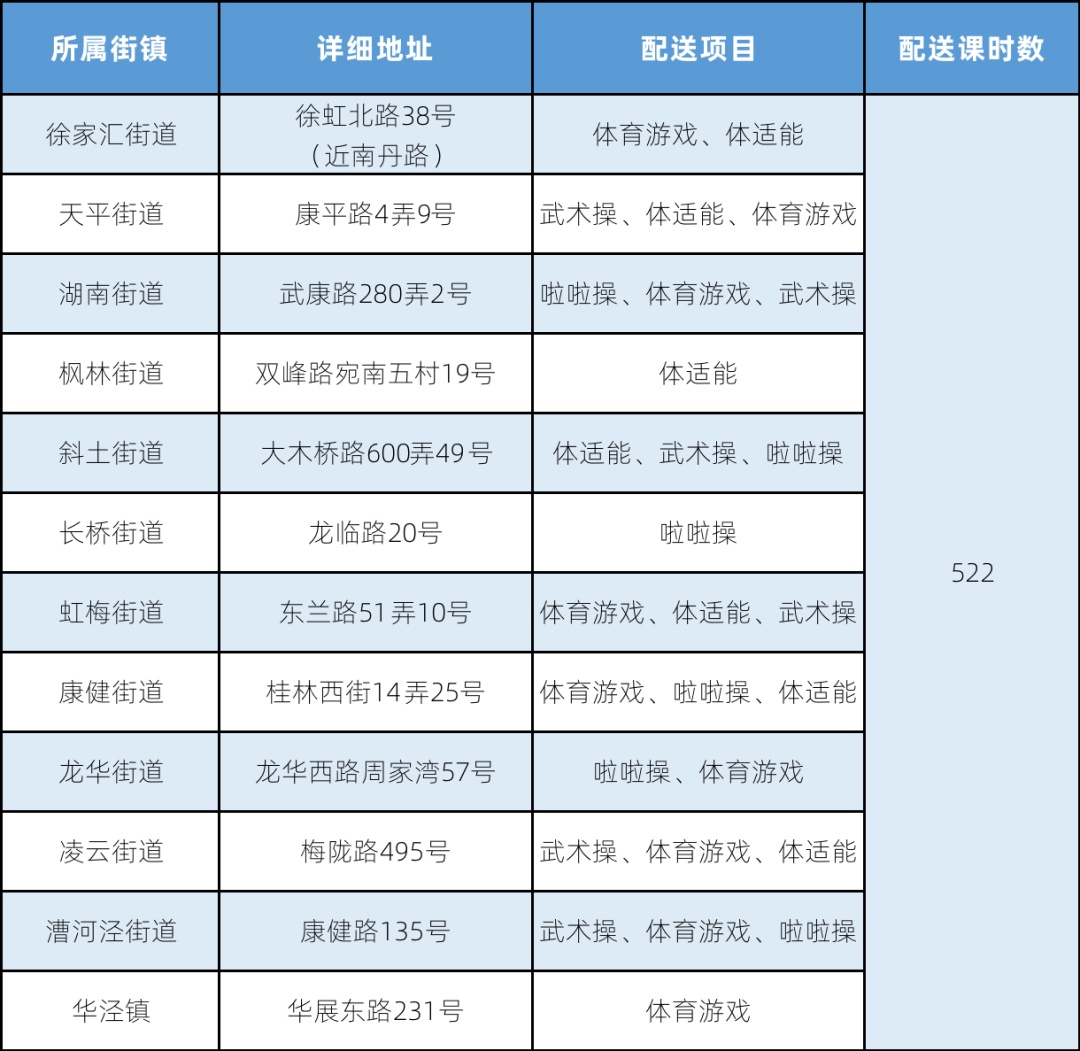 体育课程配送情况表