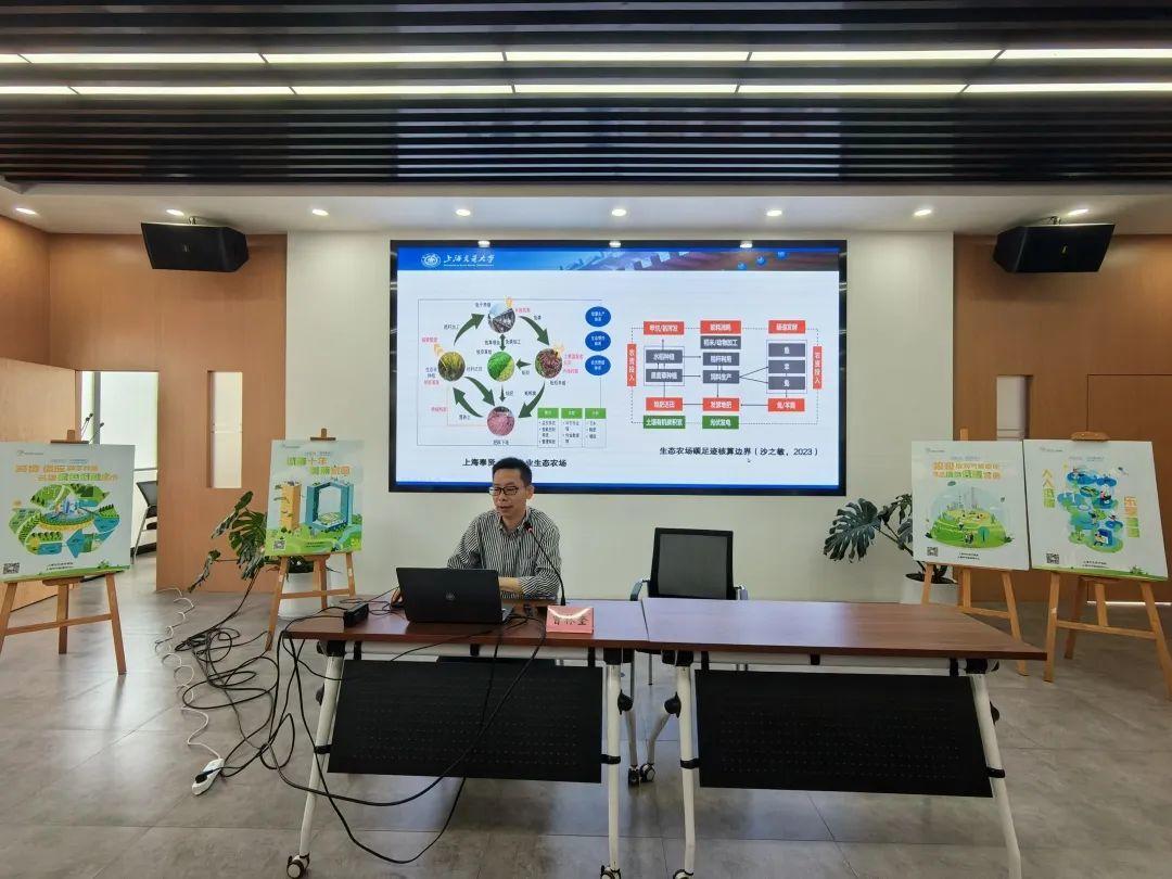 活动现场,上海交通大学农业与生物学院曹林奎教授以“农业绿色发展与低碳农业建设”为题,介绍了生态农业与面源污染控制、农田土壤生态与碳氮循环等方面的知识。随后,与会人员参观了低碳水稻试验基地、农业废弃物处理中心、林下菌菇示范基地等,了解园区低碳种植方式和碳减排成效。