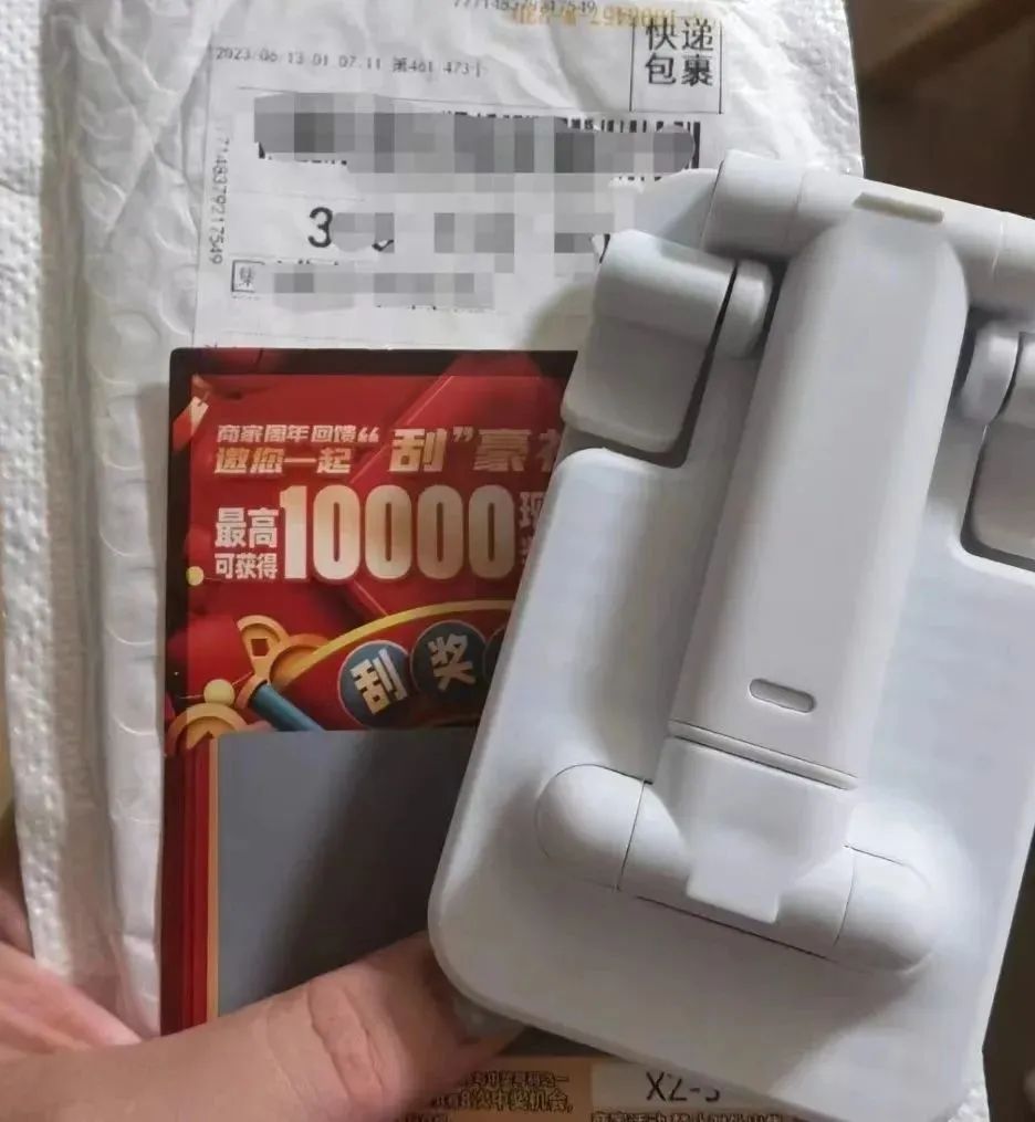 近日,家住金山的市民孙女士就收到了这样一个陌生快递,快递盒内有一个手机支架,一份落款为“某宝联盟”的邀请函,和一张带有二维码的刮奖券。