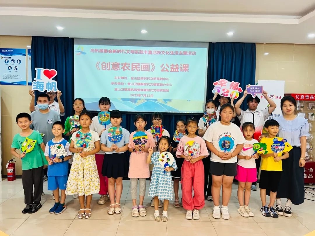 据了解,小朋友们参与的“创意农民画”体验课正是金山卫镇海帆居民区推出的社区暑期活动之一——“STEAM创意农民画公益课”活动。该活动由海帆居民区与金山前京中学联合开展,旨在进一步推动学校社区协同育人,丰富社区学生们的暑期生活。