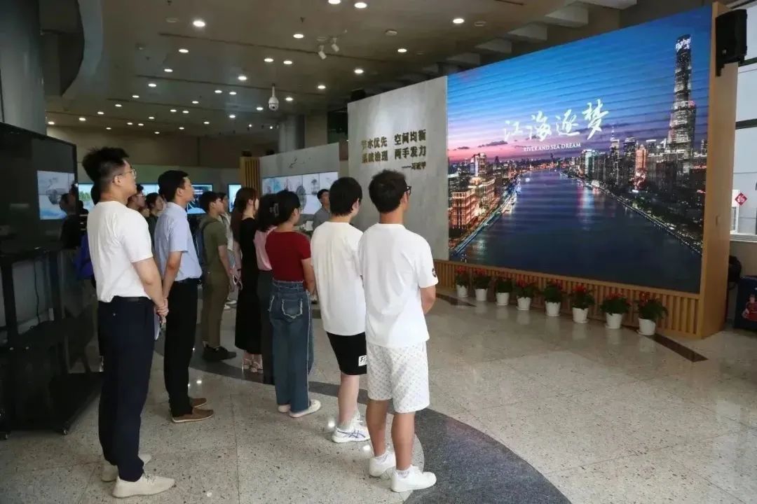 大学生们集体参观了上海水务海洋“江海逐梦”展示厅,学习了解水务海洋发展历程,并结合个人实际畅谈对即将开启的实习之旅的期待。