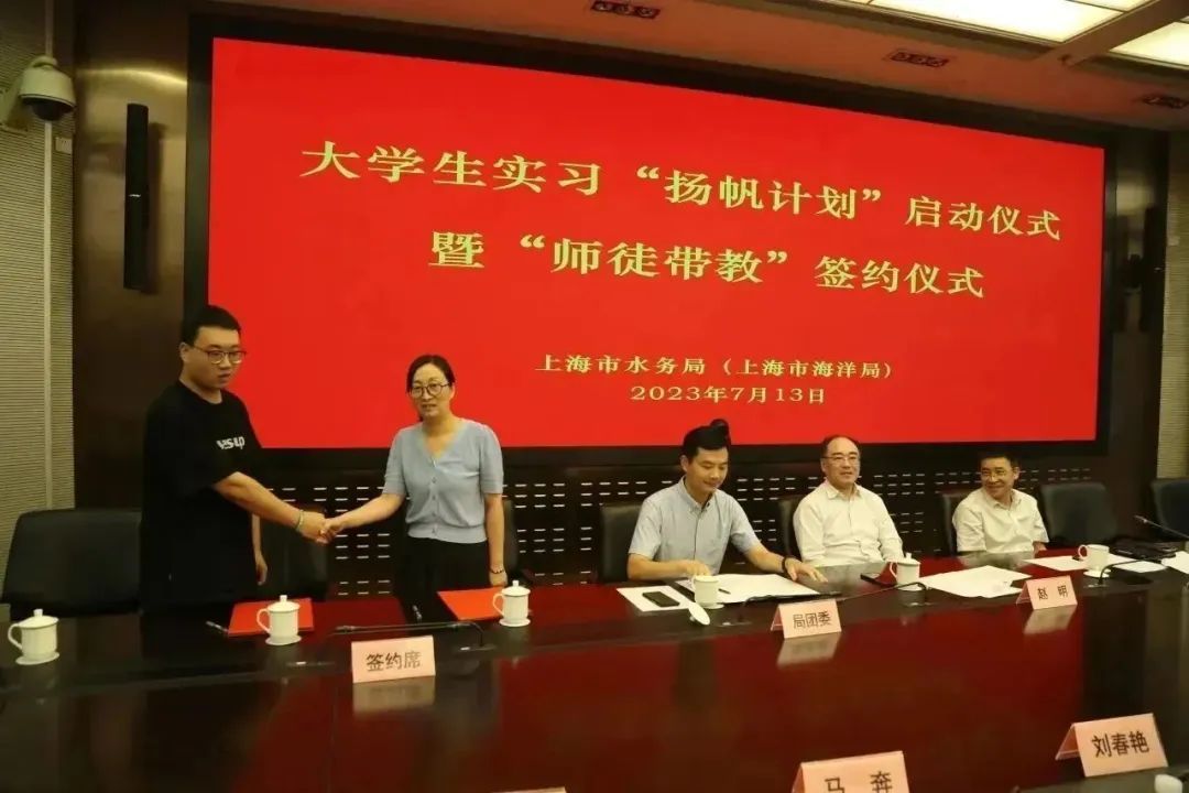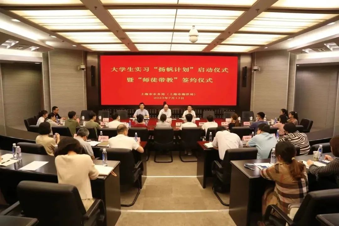 为深入贯彻落实关于促进大学生就业的相关工作要求,7月13日下午,上海市水务局(上海市海洋局)2023年大学生实习“扬帆计划”启动仪式暨“师徒带教”签约仪式在水务大厦举行,市水务局副局长、一级巡视员赵明同志出席会议并讲话。