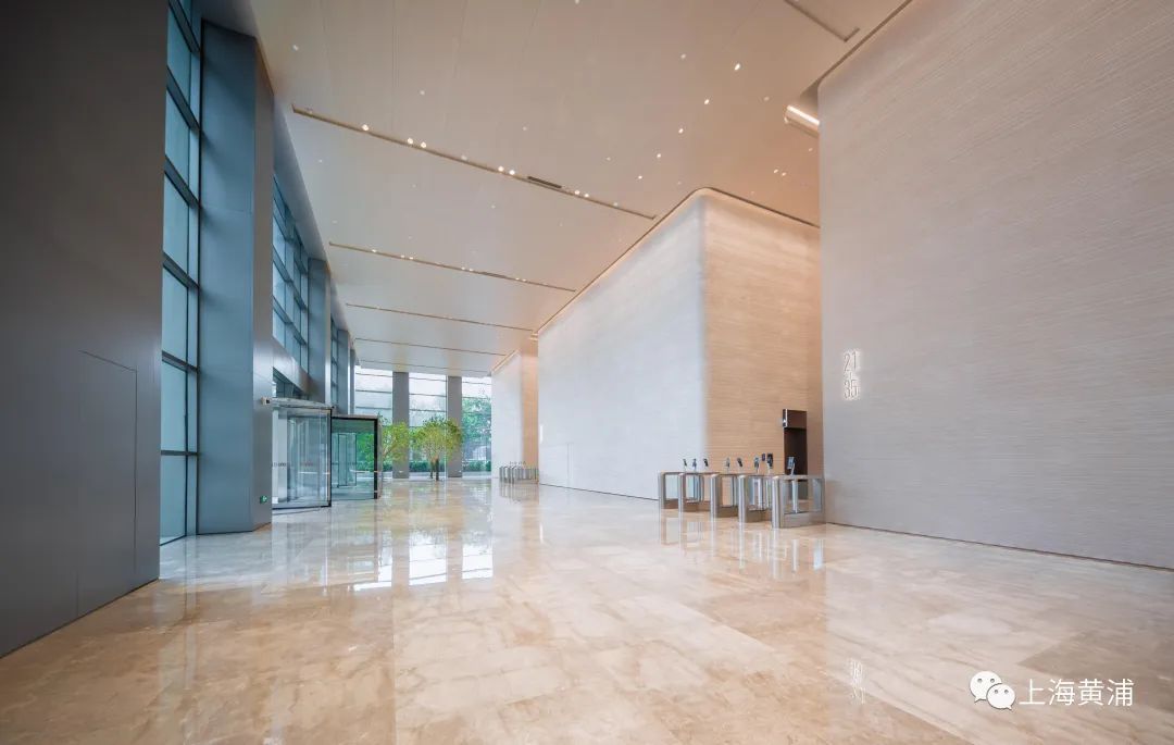 从进入大堂便可切身感受这份绿意,办公大堂挑高超过10米,内部种植数棵大树,简洁的形态下继续延续着城市绿洲的理念。同时LuOne办公楼公共电梯配置远远超出了超甲级写字楼的电梯配置标准,引入道闸管理系统、人脸识别、智能派梯等智能化设备,实现高效防控的同时给予更加便利的通勤体验。