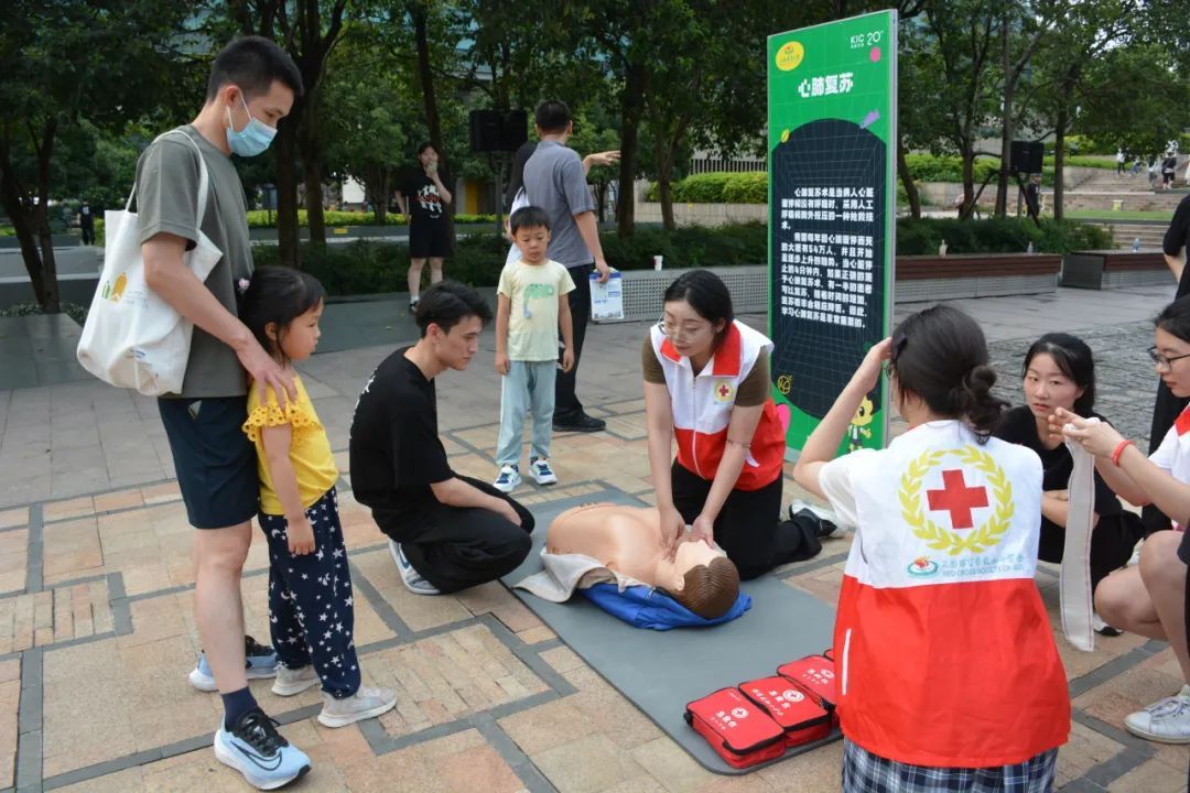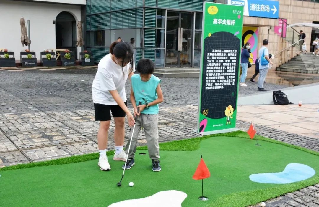 7月15日下午,上海体育大学第三次小火炬科普运动集市来到了创智天地广场。同学们准备了急救知识科普、高尔夫推杆体验、乒乓球机器人互动、八段锦表演与教学、轮滑展示与体验五个运动项目,供社区居民体验尝试。