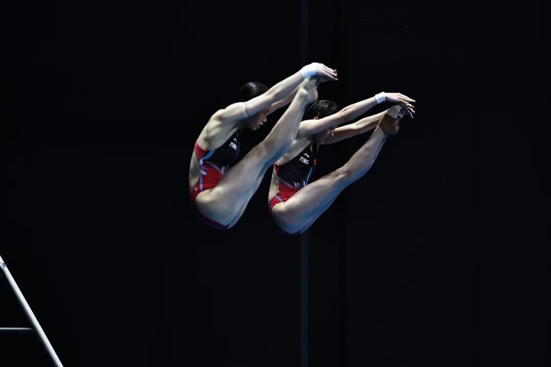 决赛中,这对“双子星”组合继续贡献精彩表现,第一跳陈芋汐/全红婵组合使用201B动作,开局就拿到了56.40的高分占据榜首。