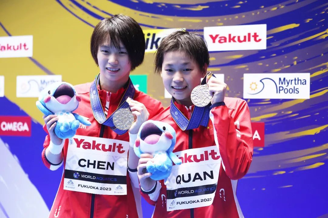 由此,陈芋汐/全红婵以巨大优势收获本届世锦赛女双十米台冠军,为中国队拿下了在本届赛事上的第5枚金牌。